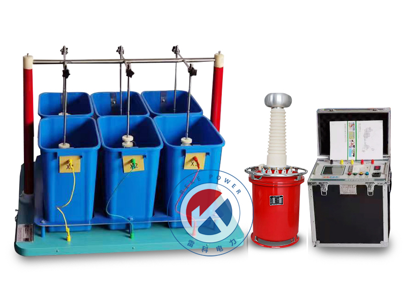 接入0~220V電源,根據電磁感應原理,使變壓器產生0~100kV工頻高壓至各電極,使絕緣靴(手套、絕緣桿)獲得規定的試驗電壓,根據絕緣靴(手套、絕緣桿)試驗規程,讀取、記錄測試參數。