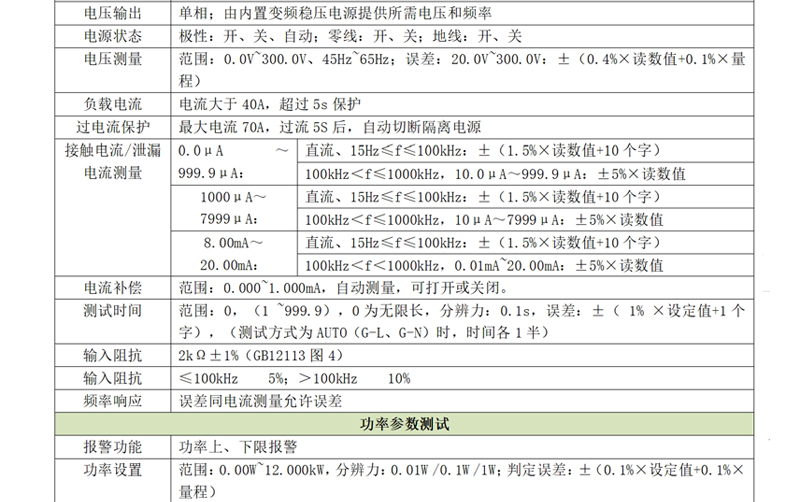 e)功率測試:支持1.000W-12.000kW功率測量范圍;