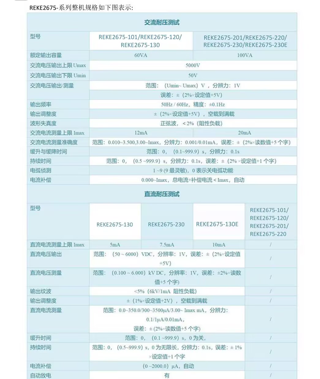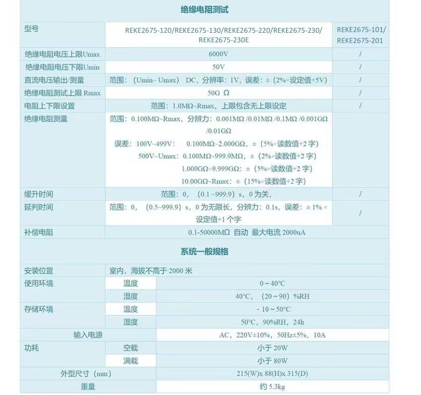 REKE2675智能交直流耐壓絕緣分析儀,涵蓋交流耐壓、直流耐壓、絕緣電阻、電弧偵測等功能于一體,大屏觸控,易學易用,精準高效,可靠穩定,接口豐富。