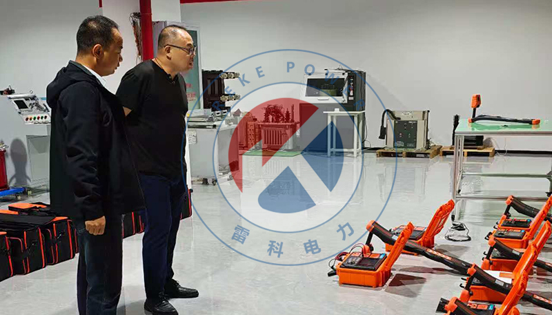 隨后,代表團(tuán)深入雷科電力的生產(chǎn)與研發(fā)區(qū)域。在整潔有序的車(chē)間內(nèi),代表團(tuán)的目光被一款正在進(jìn)行的設(shè)備所吸引——這正是雷科電力近期研發(fā)的重點(diǎn)產(chǎn)品 REKE-2190智能電纜綜合探測(cè)儀。